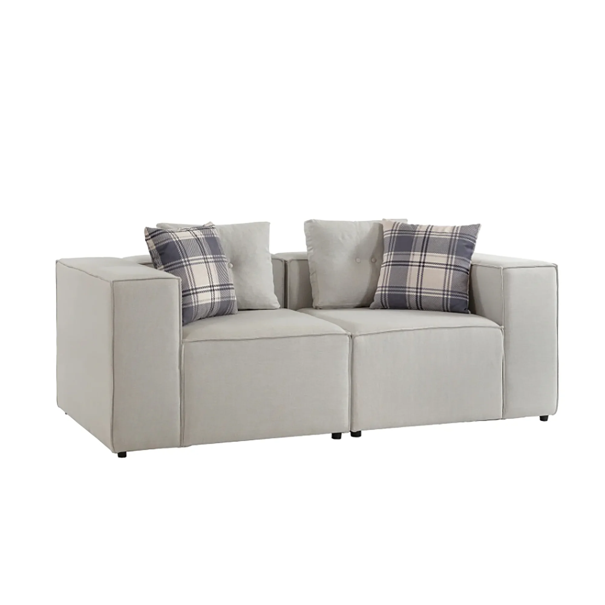 Premium fabric upholstery, high-density foam cushions, solid wood frame