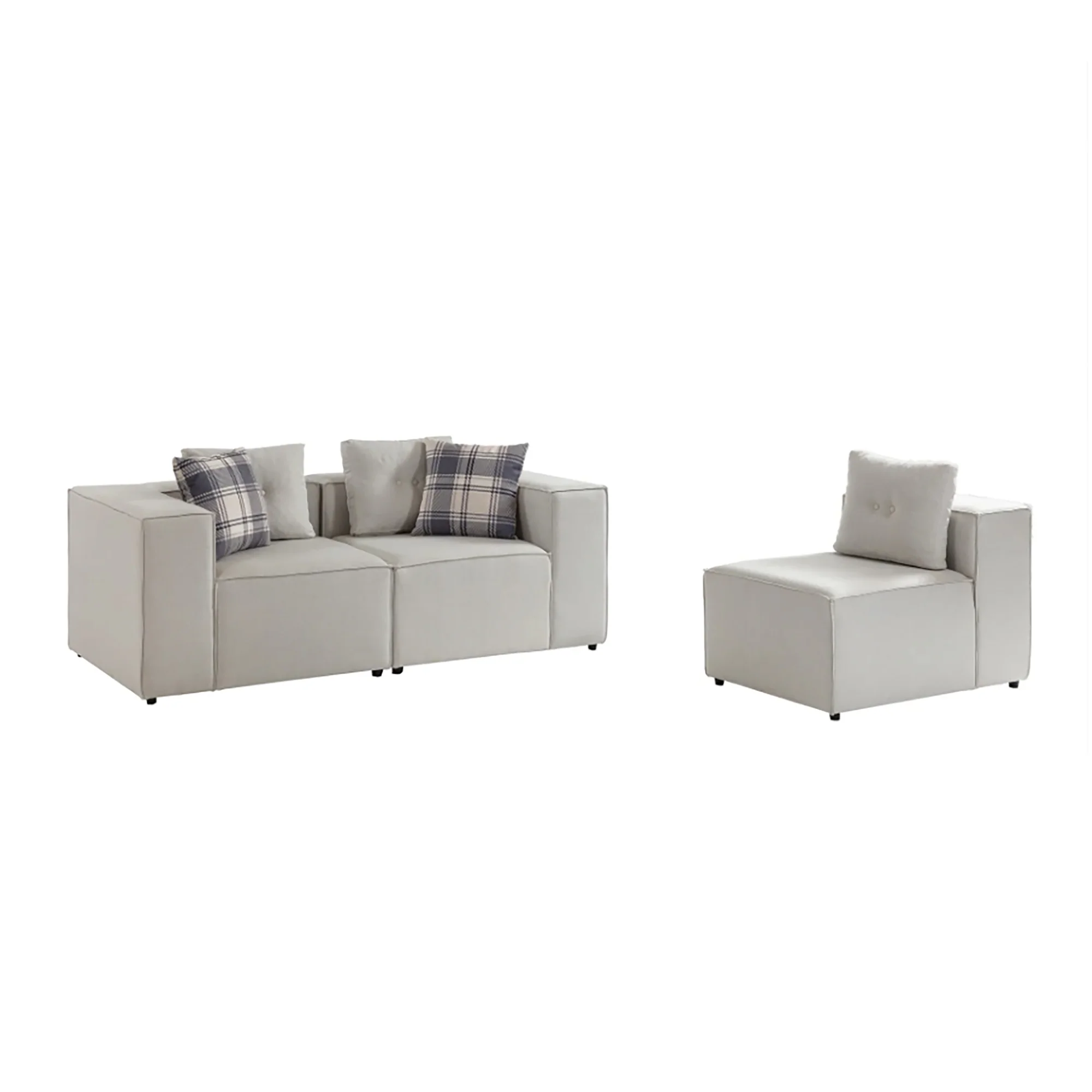 Premium fabric upholstery with refined texture and lasting durability Strong solid wood frame built for stability and long-term use High-density foam cushions for superior seating comfort Ideal for living rooms, hotels, reception areas, and offices